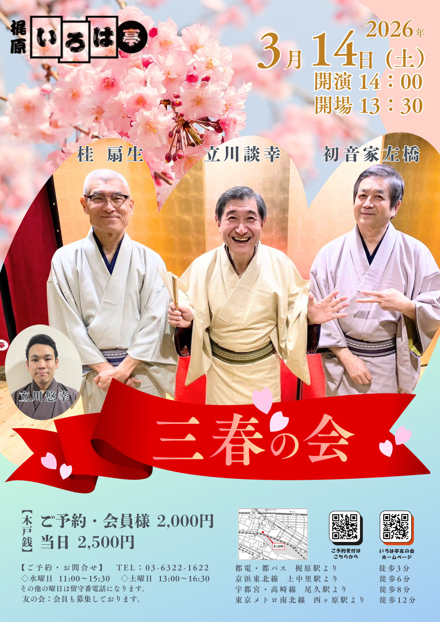 ・友の会特典:会員割引、友の会御招待券年間2枚、梶原いろは亭グッズ